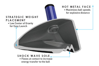The Mizuno JPX-850 Hybrid is the beginning of a new generation of distance-generating hybrids. The JPX-850 Hybrid features Mizuno's Shock Wave sole, an accordion-like design allowing the entire club head to contract and expand upon impact. The result is more energy from the swing to the ball equalling increased distance. The clubhead's lower center of gravity should make it easier for players to launch directly from the turf.