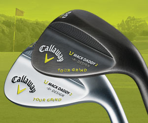 Designed by Roger Cleveland the Mack Daddy wedges from Callaway offer a high performance groove pattern that delivers 39 percent larger grooves for 25 percent more spin from the rough. In addition, these wedges come in many different lie, loft and grind options. The newest Mack Daddy 2 Tour Grind option is a T-Grind, which offers heel and toe relief for better turf interaction. The previous model Mack Daddy 2 wedge offers three additional grinds: S-grind, C-grind, and U-grind.