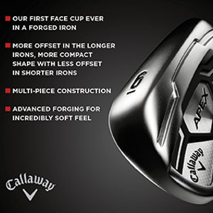 “In the first Apex line we used high strength materials and introduced dampening materials and tungsten weights in order to get ball speed performance while retaining feel,” said Dr. Alan Hocknell, Senior Vice President of R&D at Callaway. “Since then you’ve seen Callaway working on the development of cup faces in irons and it’s no surprise to learn that the new Apex irons feature this technology for the first time.”