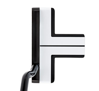 The Big T combines Odyssey’s revolutionary Versa and Marxman alignment systems, creating a dual alignment aid that can only be described as a “Big T” when you set up to the ball. The unique, white-on-black alignment design is inspired in part by the company’s existing Versa V-Line putter, a perimeter-weighted mallet that features a black contrasting aid in the shape of a T.