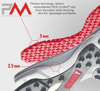 “This is the perfect golf shoe for players who may want to play 36 holes from sunrise to sunset or for the golf teacher who’s on his or her feet all day. That’s how comfortable these are,” says Jason Moore, True Linkswear’s Vice President of Product Development. “The combination of P-Motion rubber mesh and foam midsole along with the rubber tread outsole, in combination with the sock fit mid-foot and wide toe box - you’ll have to find a good reason to take these shoes off your feet.”