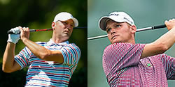 BETHLEHEM, Pa. (September 7, 2014) — Scott Harvey (pictured right), 36, of Greensboro, N.C., and Brad Nurski (left), 35, of St. Joseph, Mo., took different paths on their way to sharing medalist honors Sunday at the 2014 U.S. Mid-Amateur Championship, held at Saucon Valley Country Club. Each player posted a two-round total of 1-under 141.