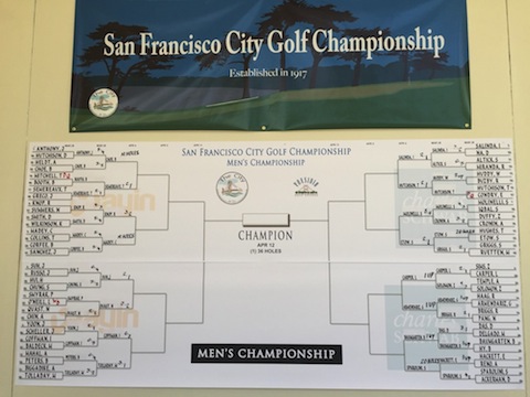 Suh will face off against Tommy Semereaux (a 2-up winner over Ryan Knop) in one match, and Hutchison will face Bryan Baumgarten (who def. Gabriel Armendariz 6&5) in the other semi-final. View all 2015 San Francisco City Men's Championship Results>