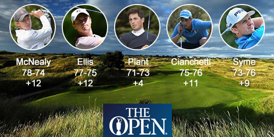 Connor Syme posted a disappointing round of 76 to finish at 9-over, while Maverick McNealy (74) and Harry Ellis (75) brought their scores down but still wound up at 12-over and well off the cut line.