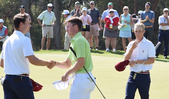 With Norman Xiong and Collin Morikawa recording a record-breaking 8&7 victory, the USA is tied with GB&I, 2-2