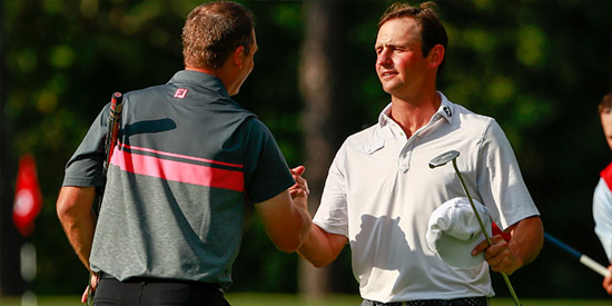 He progressed into the quarterfinals when he lifted a 54-degree wedge from the right rough to within 7 feet for a conceded par on No. 18 after he punched out from deep grass following a wayward tee shot.