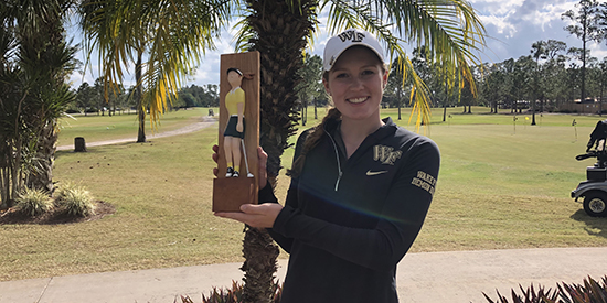 Migliaccio received a hand-carved trophy for her efforts crafted by a Sebring local. Her name will be added, in gold paint, to a wooden scorebard that runs the length of the Harder Hall Country Club restaurant. There are plenty of LPGA players’ names already there.