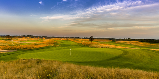Located 35 miles northwest of Milwaukee in the Kettle Moraine region, Erin Hills was designed by Dr. Michael Hurdzan, Dana Fry and Ron Whitten. The public facility, which features bentgrass greens and fine fescue fairways, opened for play in 2006. The same team oversaw a major renovation to the layout in 2010.