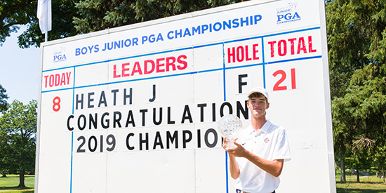 Fast-forward 15 years to Friday afternoon, when Heath received the Jack Nicklaus Trophy from PGA President Suzy Whaley as 2019 Boys Junior PGA Champion.