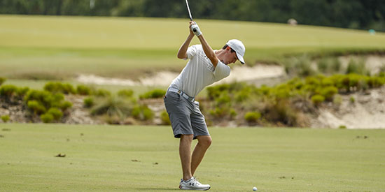 He yelled after it – “Big kick! Big hop!” – but his ball still lodged itself in a bunker short of a green and he failed to get up and down. The transportation carts circled like buzzards after that, carting Hathcoat back to the clubhouse so he could prepare for an afternoon match against Georgia Tech’s Andy Ogletree.