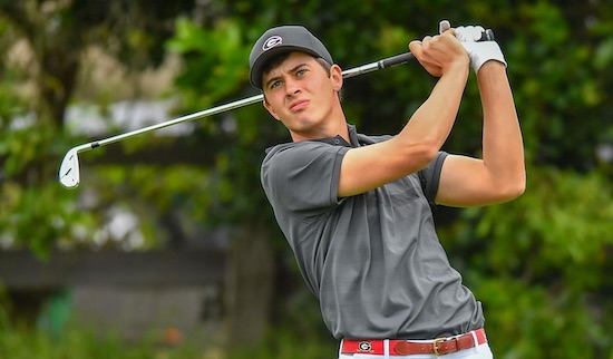 University of Georgia golfer Davis Thompson (St. Simons Island) fires 68 to grab the lead with one round to play