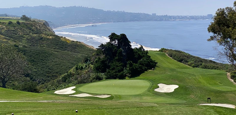 The South Course opens with a firm handshake -- if it was a Covid knuckle-bump your hand would be sore for a few holes. Bunkers left and right off the tee in the landing zone set the tone for much of the round since "Open Doctor" Rees Jones redesigned Torrey South -- it's not lost balls or deep rough that causes the most problems off the tee on the South, it's the diabolically positioned fairway bunkers. (Hit 10 of 14 fairways on the South and you've done well.) But the second shot, into the prevailing ocean breeze to a narrow, well-protected green, will really grab your attention.
