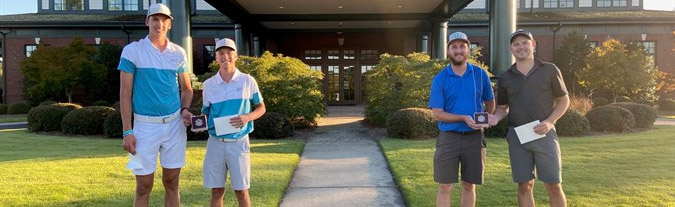 UNC Wilmington teammates Drew Hackett (Charlotte, N.C.) and Christofer Rahm (Sweden) shot a 6-under 66 at River Landing in Wallace, N.C. to share medalist honors with Evan Boyer (Morrisville, N.C.) and Garett Heffner (Apex, N.C.). The leaderboard was tight, with four teams shooting 67 and just missing out.