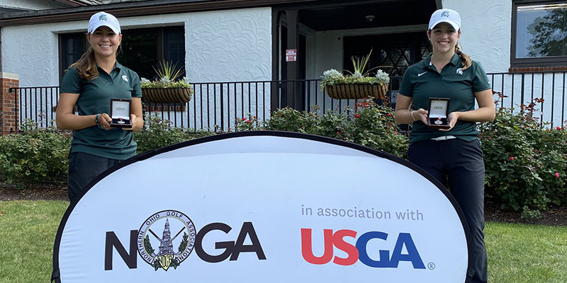 MSU teammates Yurika Tanida & Sydney Naro, shot an 8-under-par 63 in the U.S. Women’s Am. Four-Ball Qualifier at Edgewood CC today.
