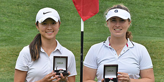 Columbia University first-year Anne Walsh (The Country Club) and Brown University first-year student Gabrielle Shieh (Nashawtuc CC) shot 5-under 67 on Tuesday at Scituate (Mass.) Country Club to qualify for the U.S. Women’s Amateur Four-Ball for the second time in three years. Boston College teammates Angel Lin (Canada) & Bibilani Liu (Cupertino, California) also shot a 67 to round out the qualifiers and best the rest of the field by two strokes.