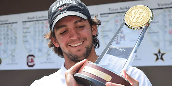 “Golf is a crazy sport,” Pinto told Arkansas Online. “I couldn’t break the top 50 in the spring in any tournament, then I got benched last week so I could practice and get my swing together. Now I’m an SEC champion, so it means a lot to me.”