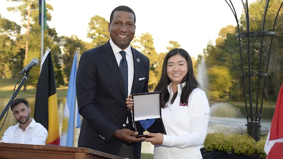 That committeeman, Fred Perpall, made the trip from Dallas to Whispering Pines where he found the perfect stage and audience to honor the second-time medal winner Rose Zhang. The occasion was the opening ceremonies of The Spirit International Amateur, where players from 20 countries are competing sent teams of 2 men and 2 women to compete across multiple team and individual categories.