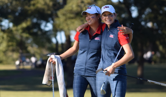 As they crossed the stone bridge to the 18th hole, the duo held an American flag between them. A fitting end to an event that saw team USA capture gold medals in four of the five events.