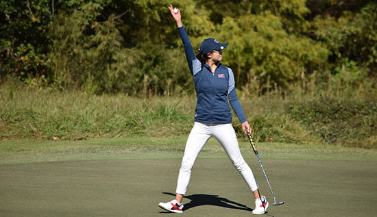 One of many "birdie waves" for Rose Zhang this week (Sean Melia photo)