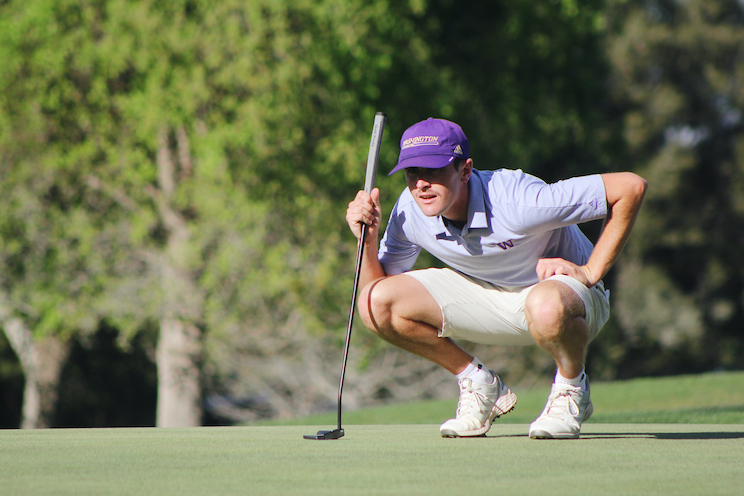 University of Washington senior Noah Woolsey lines up his putt on the par-4 10th hole during the final round of the 2022 Goodwin Intercollegiate. (Conner Penfold/AmateurGolf.com)