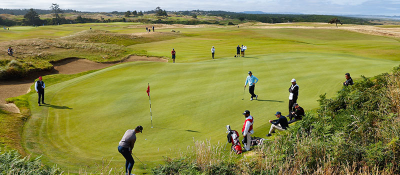 Wenyi Ding chips on the 14th hole at Bandon Dunes (USGA photo)