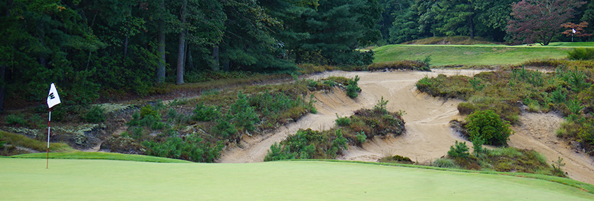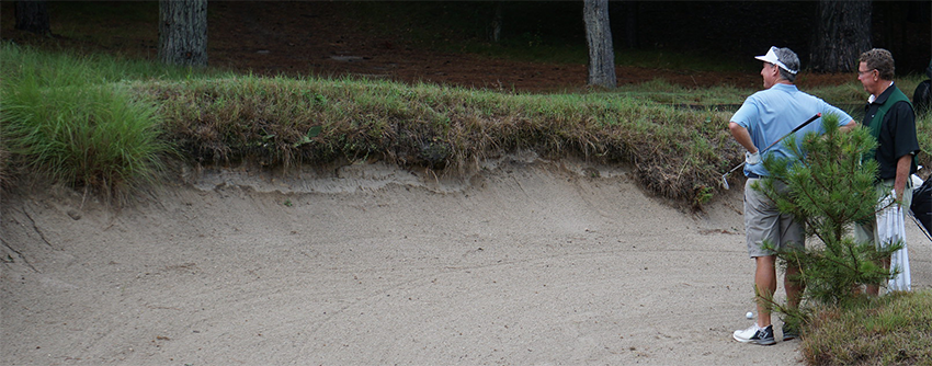 Another Pine Valley hazard - a sapling prevents Mike McCoy from taking on the green on the 19th hole (Sean Melia/AmateurGolf.com)
