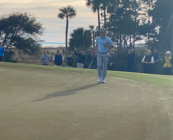 “It was a really hard putt. I read it first, had so much adrenaline going and was so nervous, I don’t think my brain comprehended what I read,” he said. “I read it right edge the first time, then saw the grain was gonna pull it to the right. Then, I read it left edge, and at the last second pushed my line like half an inch more left. So, it was probably three-quarters of a ball out left or a ball out left, and I hit a good putt.