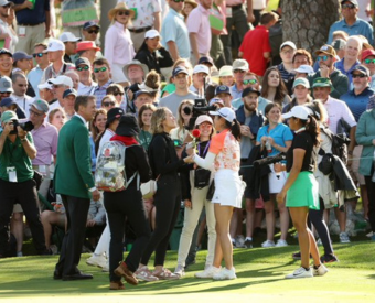 Decked out in a black Georgia sweatshirt in 72-degree heat with her college coach, Josh Brewer on her bag, Bae was quietly going about her business. After the break, she cruised through Amen Corner with two pars and a birdie on 13, closing to within one of the lead.