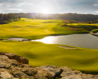 The routing plays alongside dramatically exposed rock outcroppings, bold mountain ridges, sweeping valleys, pristine streams, and beautiful mature trees, creating a memorable backdrop for the 18-hole golf course. It also boasts a 19th-hole par three intended to settle any outstanding bets that might exist after 18 holes.