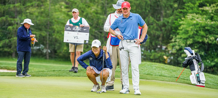 The annual Ryder Cup-style competition features top men and women collegiate players from the United States against their International counterparts. Each team will be comprised of 12 men's and 12 women's golfers. Day one will feature Mixed Four-Ball...