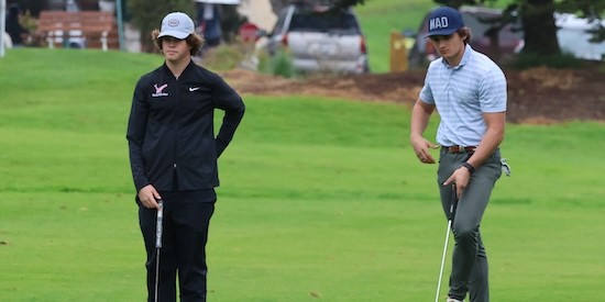 Ben Friedman of Mill Valley, Calif., William Chang of Danville, Calif., AJ Fitzgerald of Salinas, Calif., Gerad Matthew Lee of Cupertino, Calif., and Akira Ransi are all tied for first place at 2-under. Friedman and Ransi were both 4-under through 16 holes, but both made bogey on Holes No. 8 and 9 (they started on Hole No. 10) to finish 2-under.