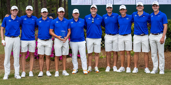The Florida men’s golf team, the Gators, shot 27-under 837 with rounds of 277-277-283, securing the team championship at the Schenkel Invitational held at Forest Heights Country Club in Statesboro, Ga.